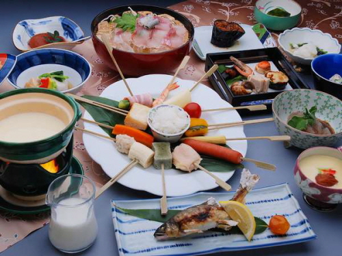 | 석식 | 있음 / 가이세키 정식 / 운영시간 18:00 ~ 19:00 / 특이사항 : 객실 내 식사 ( 5명이상의 경우 별실에서 제공 ) |