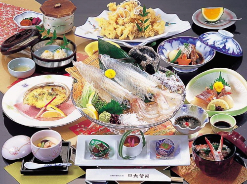 사가현의 가라츠 지역에 위치해 전 객실 바다전망으로 아름다운 가라츠 시내와 바다를 한 눈에 감상가능한 료칸 타이보우카쿠. 가라츠지역의 고지대에 위치하여 있어 관광지인 요부코다리를 감상할 수 있으며 전망노천온천으로부터 온천을 즐기며 여유를 만끽할 수 있다. 타이보우카쿠는 가라츠 지역에서도 오징어 신선한 사시미 요리인 이카 이키즈크리가 맛있기로 유명한 료칸이다. 거친파도에 신선하게 살아있는 오징어를 그대로 보여주는 이카 이키즈크리는 사가현에 가면 꼭 먹어봐야하는 음식 중에 하나이다. 객실은 전 객실 바다전망이며 요부코 다리를 감상할 수 있다. 일반화실과 화양실로 나뉘여져 있어 원하는 스타일에 맞쳐 객실 선택이 가능하다. 료칸 주변에는 가라츠의 명소인 나고야성과 요부코 시의 시장, 그리고 요부코의 전망대가 위치하고 있다. 그렇기 때문에 료칸에서 숙박하며 숨겨진 관광지를 여기저기 이동하기 편리하다. 료칸에서는 가라츠의 명물인 오징어의 다양한 선물세트도 준비되어 있다. |