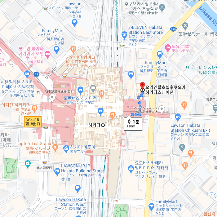 -JR하카타 역에서 도보 약 1분 거리에 위치한 오리엔탈호텔 후쿠오카 하카타스테이션 후쿠오카 공항에서도 지하철로 5분거리에 위치해 있어 교통편이 매우 좋아 주로 해외 비지니스맨이나 관광객이 많이 이용한다. 가격 대비 뛰어난 입지와 풍부한 부대시설로 멀리까지 나가지 않아도 많은 시설을 이용할 수 있다. 지하에는 일식, 양식, 이탈리아 레스토랑가가 있으며, 1층엔 편의점과 스타벅스가 있다. 이 외에도 티 라운지, 바, 야식 코너, 연회장, 회의실 등 많은 부대시설을 자랑하는 호텔이다. 가격대비 만족도도 높은 센트라 자 하카타는 접근성을 중요시 하는 여행객 이나 출장으로 숙소를 찾으시는 분들께 안성 맞춤이다. |