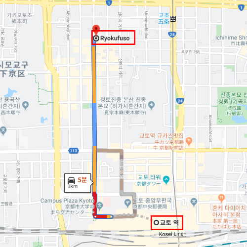 일본의 옛 수도 였던 교토는 일본의 오래된 역사와 전통, 문화를 경험할 수 있는 지역으로서, 세계문화유산등 다양한 문화재가 있다. 료칸 료쿠후소는 교토역의 북쪽에 있는 유네스코 세계문화유산 "니시혼간지"와 "히가시혼간지"의 정중앙에 위치하고 있다. 설립된지 약 20년이 되어 일본의 전통미가 듬뿍 느껴지는 료칸으로서, 료칸의 배려가 느껴질만큼 깔끔하고 청결하게 정돈되어 있는 객실은 아늑하며 따뜻함도 느낄 수 있어 여행 중 편안한 휴식이 장소가 되어 줄 것이다. 전 객실 욕조가 구비되어 있지만, 대욕장도 마련되어 있어 좀 더 넓은 공간에서 여유있게 여행의 피로를 해소할 수 있다. 또한 신선하고 맛이 보장된 계절 재료를 사용하여 만든 가이세키요리, 료칸한정메뉴도 별도로 준비되어 있어 다양한 숙박객의 입맛을 만족시켜 준다. |