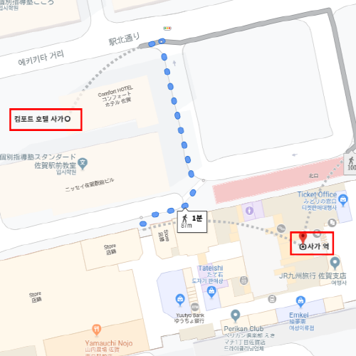 -사가역에서 도보로 1분인 최적의 위치를 자랑하는 컴포트호텔사가. 컴포트 호텔 계열의 호텔로 어디에서도 호텔의 위치를 확인할 수 있는 컴포트 호텔의 로고가 호텔 건물 상단부에 위치하여 호텔을 찾는 것이 어려울 일은 없다. 타지에서 모르는 곳을 여행하는 데 있어 자신의 숙박지를 확실히 아는 것은 무엇보다도 중요한 것이다. 컴포트 호텔 사가는 프론트에서 접수를 24시간 대응하고 있으며 15시에서 24시까지 무료 커피를 여행객들에게 제공하고 있다. 또한, 이곳의 스텝들이 아침마다 직접 만들어 제공하고 있는 무료 조식도 놓칠 수 없는 서비스이다. 오니기리와 빵, 스프, 씨리얼에 심지어 디저트로 와플과 직접 만든 요구르트에 신선한 과일 등, 이 모든 것을 무료로 아침에 이용할 수 있다. 더불어 로비에는 무료로 이용할 수 있는 컴퓨터가 2대나 위치하고 있어 비즈니스 여행 중 급박하게 컴퓨터가 필요해졌을 고객에게도 세심한 배려를 아끼지 않고 있다. 이곳의 객실은 싱글과 트윈객실이 있으며, 넓은 객실을 자랑하고 있다. 최적의 위치와 무료 조식을 선호하는 여행객들에게 추천하고 싶은 호텔이다. |