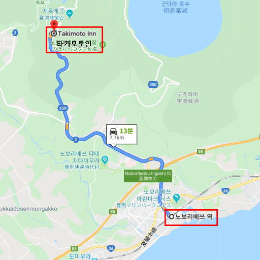 숙박지 주변노보리베츠역에서 차로 약 13분 소요 |