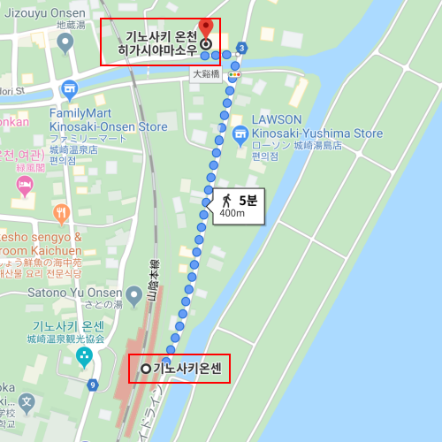 숙박지 주변 : 키노사키온센역에서 도보 약 5분 소요