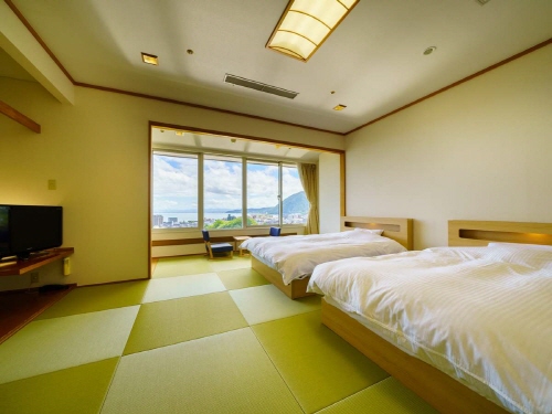 벳부시내 고지대에 자리해 벳부만과 온천 거리의 풍경을 한눈에 감상할 수 있는 100대 무료 주차장 완비 도심형 온천 호텔입니다. 총 63실 이상으로, 오션뷰·마운틴뷰 객실뿐 아니라 노천탕이 딸린 객실도 제공되며, 전 객실 무료 Wi‑Fi, 냉장고, 안전 금고 등 편의 시설이 갖춰져 있습니다. 온천 시설은 100% 자가 원천 흘려보내기방식의 미인탕으로 불리는 탄산수소염 온천수을 사용한 광활한 대욕장과 노천탕을 갖추고 있으며, 사우나 및 손 온천 등 다양한 입욕 경험이 가능합니다. 사계절 변화가 뚜렷한 정원 풍경 아래에서 봄에는 벚꽃, 여름은 신록, 가을은 단풍, 겨울에는 차분한 정취를 느끼며 여유로운 온천 체험이 가능합니다.식사는 현지 특산물 가이세키와 뷔페 스타일의 아침 식사를 통해 지역의 풍미를 고루 누릴 수 있으며, 현지 요리와 라이브 쿠킹 메뉴가 포함된 이른 아침부터 풍성한 식사를 제공합니다. 부대시설로는 24시간 프런트, 무료 주차장(100대), 코인 세탁실, 마사지 서비스, 휠체어 대응, 다국어 지원 직원이 있는 등 가족, 단체, 비즈니스 여행객 모두에게 편리한 환경을 제공합니다.벳푸 역에서 차로 약 5분 거리에 위치해 있어 접근성도 뛰어나며, 자연의 풍광·온천·식사·편의시설까지 균형 있게 즐기고 싶은 여행객에게 특히 추천드립니다. |