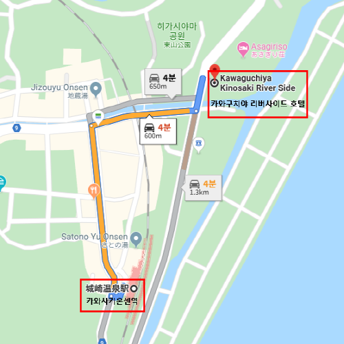 키노사키 온천역에서 도보 6분(500m) 거리에 위치한 가와구치야 키노사키 리버사이드 호텔은 요리 전문 온천 료칸으로서, 숙박객에게 최상의 휴식과 최고의 요리의 제공을 기본으로 삼는 곳 이다. 키노사키 온천으로의 여행을 계획하는 많은 관광객들은 이 마을에서 유명한 외탕 순회(外湯めぐり)를 위해 방문하는데, 키노사키 온천마을에서 가까운 위치이므로 외탕 순회하기에 좋은 입지조건을 갖고있다. 또한 2016년 05월 01일, 대욕장을 리뉴얼 오픈 하므로 이곳에서의 입욕도 느긋하게 즐길 수 있다. 개인 노천온천이 포함된 객실도 있으며, 일행끼리 이용 가능한 대절온천(가족탕)도 마련되어 있어, 료칸 내에서 프라이빗하게, 다양한 입욕을 즐길 수 있다. 키노사키 온천 마을에서 가깝고, 료칸의 가이세키 요리를 중점적으로 숙소를 검토하는 숙박객에게 추천하는 료칸이다. |