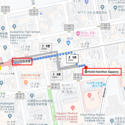 손님에게 향하는 서비스가 일품인 호텔, 해밀턴 삿포로 호텔. 해밀턴 삿포로 호텔의 스텝들의 목적은 "상냥함이 넘쳐나는 호텔"이다. 그만큼 손님들을 접객하는 데 있어 서비스가 좋기로 유명하다. 해밀턴 삿포로 호텔은 근대미술관, 니토리문화호텔, 교육문화회관, 동물원과도 가까운 위치를 가지고 있다. 또한, 객실은 차분한 색으로 되어 있어 관광을 마치고 나서 피곤한 몸과 눈을 안락하게 해주고 있다. 더불어 양실 타입의 객실만이 아니라 일본식 객실인 화실도 18조라는 큰 사이즈의 객실로 있다. 해밀턴 삿포로 호텔의 경우 체크아웃 시간도 11시까지로 시간을 넉넉히 잡고 짐정리를 천천히 진행할 수 있게끔 제공하고 있다. 이처럼 상냥함이 넘쳐나는 것을 객실뿐만 아니라 조식에서도 확인할 수 있다. 뷔페식 식사로 이루어지며 배고픈 속을 든든히 채워 체크아웃을 기분좋게 진행할 수 있게 한다. 저렴한 가격으로 삿포로 내 호텔을 찾는 자에게 추천하고 싶은 호텔이다. |