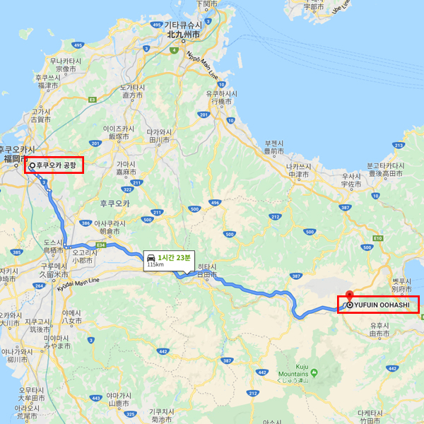 공항 기준후쿠오카 공항에서 차로 약 1시간 30분소요 |