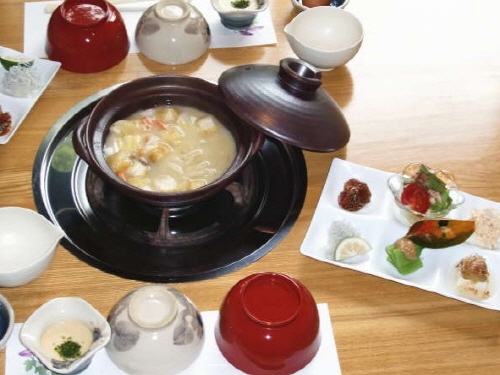 | 석식 | 있음 / 가이세키 정식 / 운영시간 18:00 ~ 18:30 / 특이사항 : 식사처 식사 (스키야키, 샤브샤브 중 선택) |