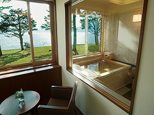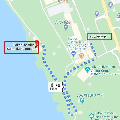 시코츠코국립공원의 인근에 위치하고 있는 레이크사이드 빌라 스이메이카쿠. 레이크사이드 빌라 스이메이카쿠에는 모두 8개의 객실만 있으며, 모든 객실에서 시코츠 호수를 바라보며 온천을 즐길 수 있다. 또한, 이곳의 객실에는 트윈 객실과 화양실로 이용인원이 2명부터 4명까지로 소규모의 료칸이다. 그렇지만 소규모의 고객만을 대접할 수 있기 때문에 다양한 방면에서 더 좋은 대접을 받을 수 있다. 그 예로 식사이다. 이곳의 식사는 다른 료칸과는 다르다. 조식은 일본식 정식으로 제공되지만, 석식은 이탈리아식 코스요리로 손님들에게 제공하고 있다. 더불어 레이크사이드 빌라 스이메이카쿠에는 또한 객실마다 마사지의자가 한 개씩 준비되어 있다. |