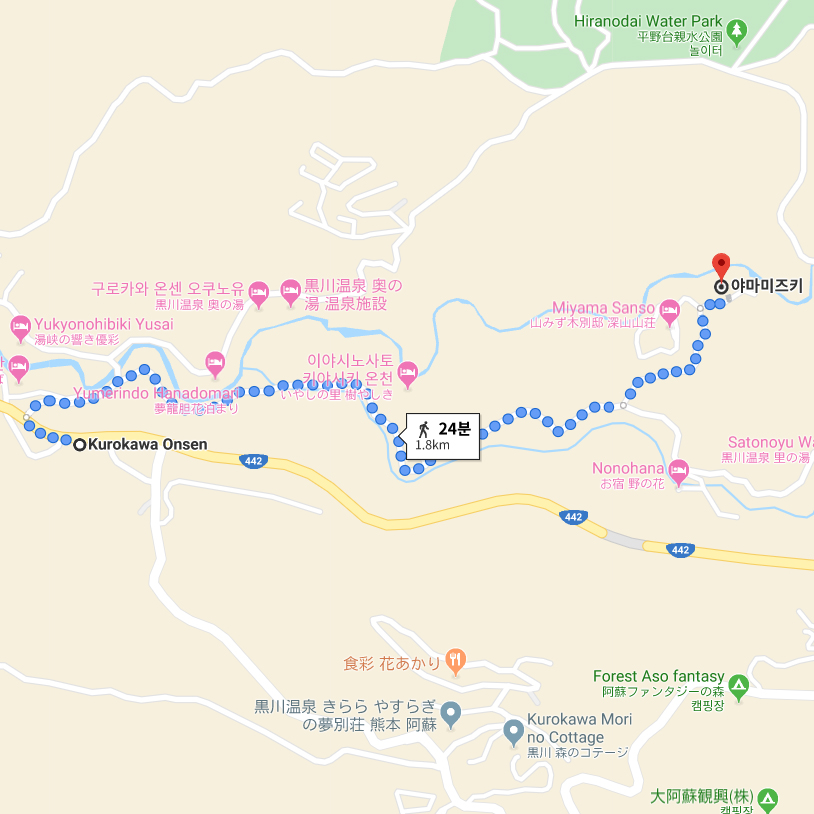 100% 자연에 둘러싸여 인적이 드문 쿠로가와의 산 속에 자리잡고 있는 야마미즈키 료칸, 야마미즈키의 어원은 야마(산),미즈(물),키(나무)의 환상적인 조합을 이룬다는 뜻으로서 실제의 료칸도 산,물,나무와 아주 잘 어울리는 공간연출이 특징이기도 하다. 야마미즈키의 온천욕을 즐기고 있노라면 마치 아무도 없는 산속에서 유유히 신선이 된 듯한 느낌을 주기도 한다. "료칸들이 옹기종기 모여있는 곳이 아닌 나만의 료칸의 느낌을 느끼고 싶다","자연과 친인화적인 관광을 하고 싶다"라고 느끼는 고객들에게 적극 추천하는 료칸이기도 하다. 비록 쿠로가와의 중심지에서 약간 떨어져 있긴 하지만 쿠로가와 버스정류장에서 무료로 송영을 해 주기 때문에 이동하는것에 대한 불편함은 전혀 없다. 또 한가지의 특징으로서는 보통의 료칸은 체크인이 오후 3시, 체크아웃이 오전 10시이나 야마미즈키 료칸은 체크인이 오후 2시, 체크아웃이 오전 11시로서 다른 료칸보다 2시간이나 더 즐길 수 있다는 것이 특징이다. 좋은 료칸일수록 산 깊은 곳, 또 교통이 불편하다라는 정설이 있듯이 좋은 료칸과 좋은 온천 그리고 좋은 서비스를 맛보기 위해서 이러한 불편은 1년에 한, 두번 있을 온천여행에 있어 감수할 만한 가치가 있지 않을까. |