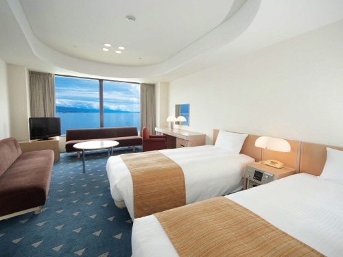 비와코 오츠 프린스 호텔은 JR 교토 역에서 2정거장 떨어져 있는 오츠역에 위치해 있다. 바로 비와코 앞에 위치하는 호텔인데, 총 38층 높이로, 비와코를 한 눈에 전망하기에는 더할 나위 없다. 교토역 도착 후 호텔까지 가지 않아도 JR교토역의 프린스 호텔 웰컴 카운터에 체크인 후 짐을 맡기면 그 곳에서 짐을 호텔까지 무료로 옮겨주므로 짐 없이 안심하고 여유롭게 관광 할 수 있다. 관광 후 객실로 돌아와 커튼을 열어보면, 보석으로 장식해놓은 것 같은 비와코와 오츠 마을을 발견할 수 있다. 이것이 경치가 모든 것을 말해준다는 호텔 슬로건의 이유이다. 호텔에서 나와 비와코쪽으로 조금만 발걸음을 옮기면 프린스 호텔 항구를 볼 수 있는데, 이곳에서 유람선도 운행하고 있으므로 비와코를 좀더 가까이에서 보고 느끼며 추억을 쌓고자 하는 여행객에게 추천한다. 비와코 오츠 프린스 호텔은 역에서 거리가 있지만, 그만큼 호텔에서 불편함을 덜어주는 서비스를 제공하고 있으므로, 위치 걱정은 접어두고 비와코와 아름다운 교토의 작은 마을들을 구석 구석 여행하고자 하는 관광객에게 추천하는 호텔이다. |