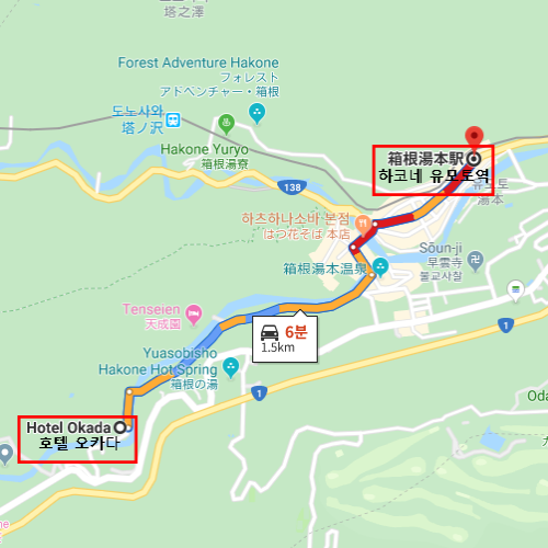 호텔오카다는 3년연속 인기온천료칸에 뽑힌 하코네의 미인온천 리조트료칸이다. 하코네유모토온천의 원천 5개를 이용한 3가지 타입의 온천을 경험할 수 있으며, 숙박자가 아니라도 이용 가능한 온천도 갖춰져 있다. 총 122개의 객실은 숙박객의 취향에 맞출 수 있도록 다양한 타입이 준비되어 있으며, 시설 내에 다양한 부대시설들도 준비되어있어, 밖으로 나가지 않아도 하루를 알차게 보낼 수 있다. 하코네의 자연과 온천을 만끽하며 다양한 볼거리를 즐길 수 있는 호텔오카다는 친구, 가족과의 여행뿐만 아니라 하코네의 온천을 즐기고 싶은 관광객이라면 누구에게나 추천하는 리조트료칸이다. |