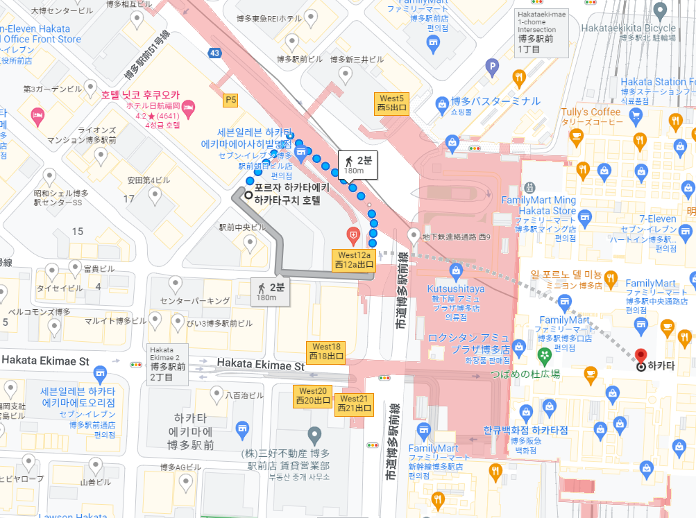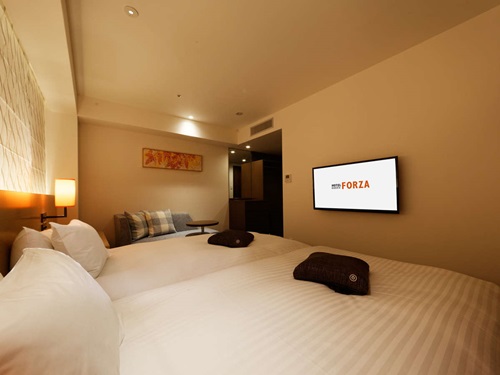 - "호텔 포르자 하카타에키 하카타구치"는 하카타 역에서 도보 3분 거리에 위치한 호텔이다. 2017년도 2월에 신축된 건물로 청결함을 자랑한다. 호텔명에서 포르자(FORZA)는 이탈리어로 건강과 활력을 의미한다. 총 113실의 객실을 갖추고 있으며 객실명을 힐링, 릴렉싱, 리프레쉬 등으로 설정하여 객실에 들어가기 전부터 아늑하고 따뜻함 느낌을 준다. 객실은 싱글부터 트윈까지 다양한 타입을 보유하고 있어 고객의 여행 스타일에 맞춰 선택할 수 있다. 뷔페식으로 제공되는 조식은 활력 가득한 아침 식사라는 컨셉으로 큐슈의 명물부터 하카타의 명물인 명란까지 준비되어있다. 또한, 무료로 사용 할 수 있는 와이파이와 객실 내에 비치된 아이패드로 비지니스 뿐만 아니라 여행 전 필요한 정보를 찾는 데 도움을 받을 수 있다. 후쿠오카에서 여행 내 이동과 교통을 중시하고 여행 후에 힐링을 받고 싶으신 분들께 「호텔 포르자 하카타에키 하카타구치」를 추천한다. |