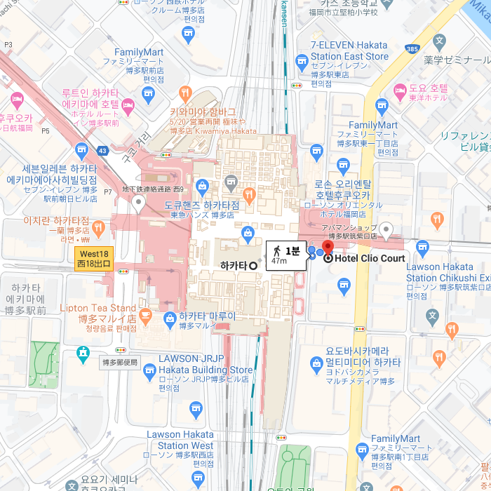 -2003년 11월 호텔 전관을 리뉴얼하고 재오픈하여 내부 시설은 후쿠오카의 어느 호텔과 견주어도 손색이 없을만큼 넓직하고 깨끗하며 고급스럽다. JR하카타역 후문 바로 앞에 위치하여, 관광은 물론 비즈니스에도 최적의 위치를 자랑하는 스탠다드급 호텔이다. 1,2층은 다른 용도로 사용되고 3층부터 호텔이 시작된다. 조식은 3층 프론트 맞은편의 커피숍에서 일식 또는 양식 뷔페로 제공되고 있으며, 한국인 손님을 위한 한식도 추가되어 있다. |