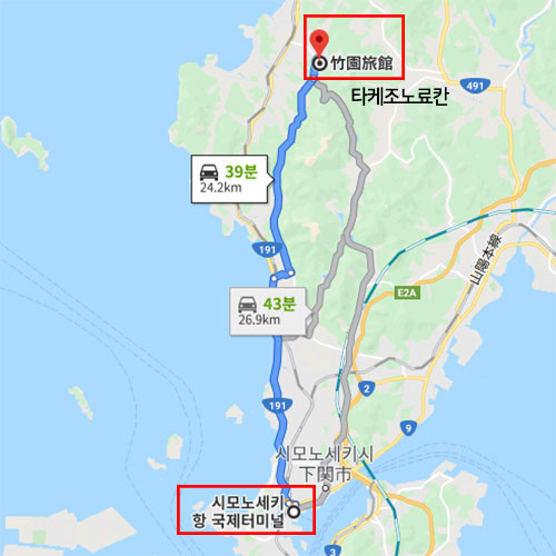 공항 기준시모노세키항 국제터미널에서 차로 약 40분 소요 |