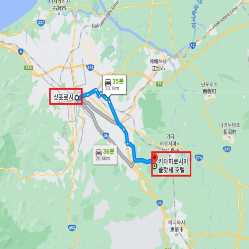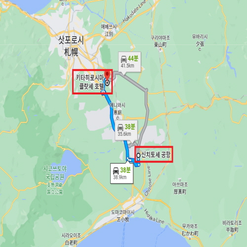 공항 기준신치토세 공항에서 차로 약 38분 소요 |