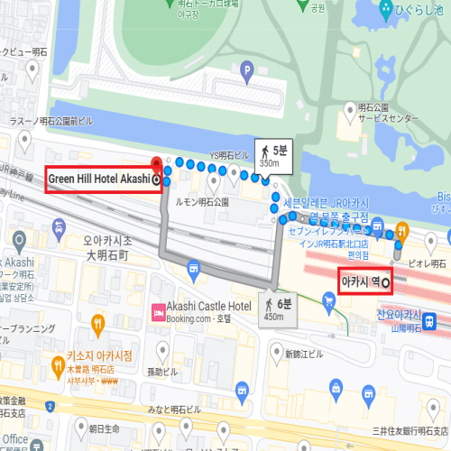오사카와 히메지의 중간점 아카시 시(明石市)에 위치한 그린힐 호텔은 아카시역(明石駅)에서 도보로 약 5분 거리이며 각 방면으로 이동이 편리하여 비즈니스나 관광을 즐기기에 편리한 위치이다. 총 109개의 객실은 전실 금연이며 일본식 다다미 방 등 다양한 타입의 객실과 아카시성 공원의 자연을 만끽할 수 있는 캐슬 뷰도 선택할 수 있다. 그 밖에도 일식, 양식 메뉴의 조식 뷔페에는 카레, 수프, 낫토와 음료 등이 마련된 셀프 코너도 이용할 수 있다. |
