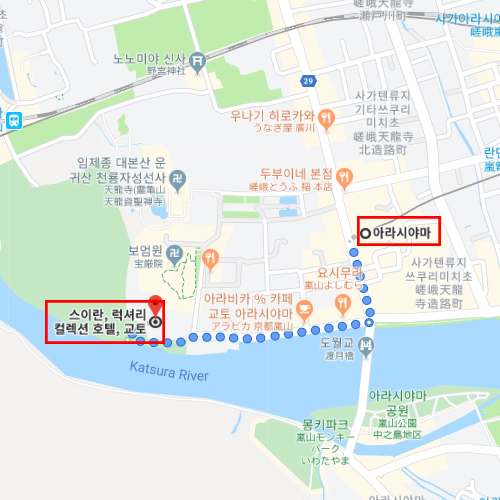 숙박지 주변아라시야마역에서 도보 약 10분 소요 |