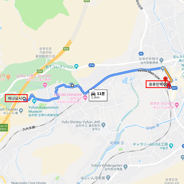 숙박지 주변유후인역에서 차로 11분소요 |